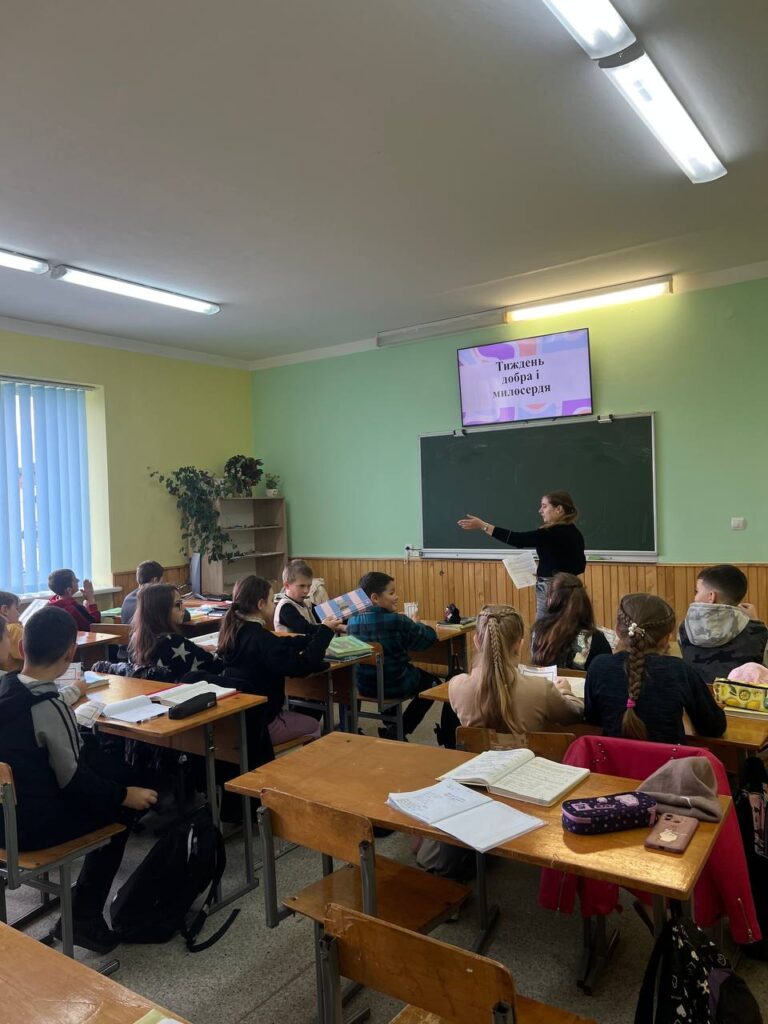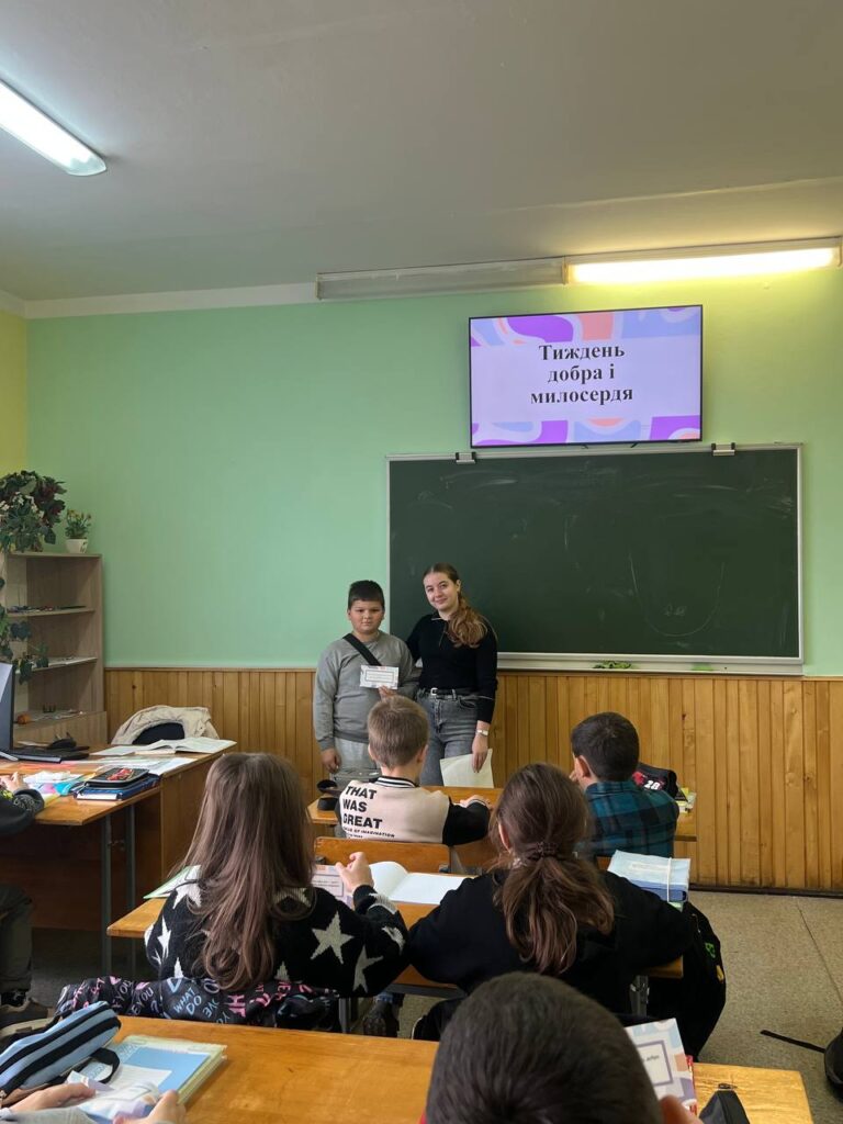 7 жовтня Василик Юлія провела годину класного керівника у Микитинецькому ліцеї для учнів 5-А класу на тему «Тиждень добра і милосердя» . Під час зустрічі діти переглянули яскраву та пізнавальну презентацію ️, обговорили важливість добрих учинків у нашому житті та поділилися власними прикладами, коли вони допомагали іншим . Учні розглядали різні життєві ситуації, у яких важливо проявити милосердя, підтримку й розуміння ❤️. У теплій і щирій атмосфері ️ п’ятикласники дійшли висновку, що добро починається з кожного з нас, і навіть найменший добрий вчинок може зробити цей світ світлішим та щасливішим ✨.